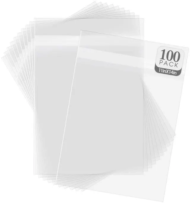Pack of 100 11 3/8" x 14 3/16" Acid-Free Crystal Clear Sleeves Storage Bags for 11x14 Prints/Photos/Framing Mat Mattes/Documents