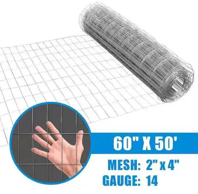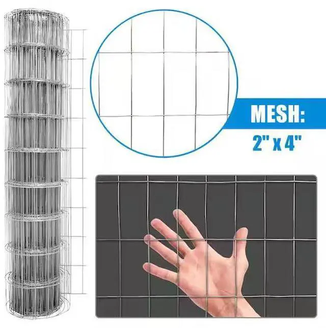 Fencer Wire 14 Gauge Galvanized Welded Wire Fence, 2 in. x 4 in. Mesh Opening for Vegetables, Garden Fruits and Animals Enclosure. Sturdy construction. 2 in. x 4 in. opening square mesh. Excellent plasticity and flexibility. Applications for various scenes and 100% satisfaction guarantees.