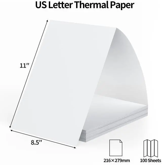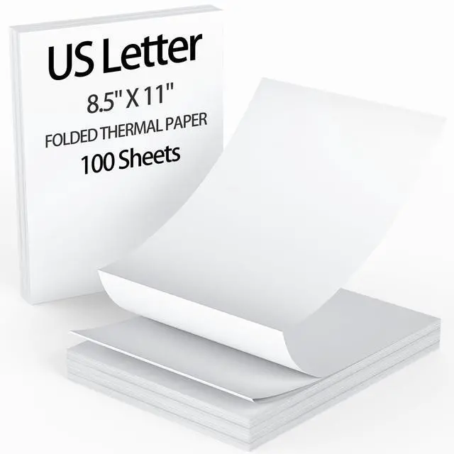 Size: 8.5" x 11" US Letter size Folding thermal printer paper, 100 Sheets
