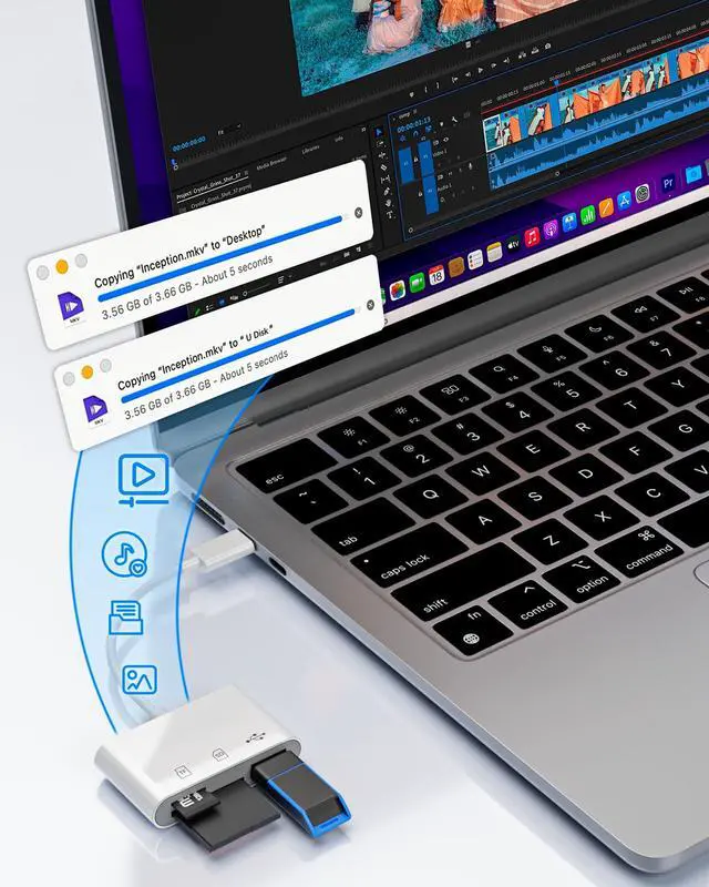 When paired with high-speed cards and compatible devices, it supports data transfer rates up to 104MB/s for SD/TF cards and 480Mbps for USB 3.0 OTG devices.
