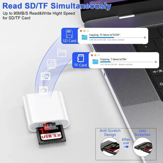 sd card reader supports SD, SDHC, SDHC, SDXC, Micro SD, Micro SD, Micro SD, Micro SDHC, Micro SDXC card.