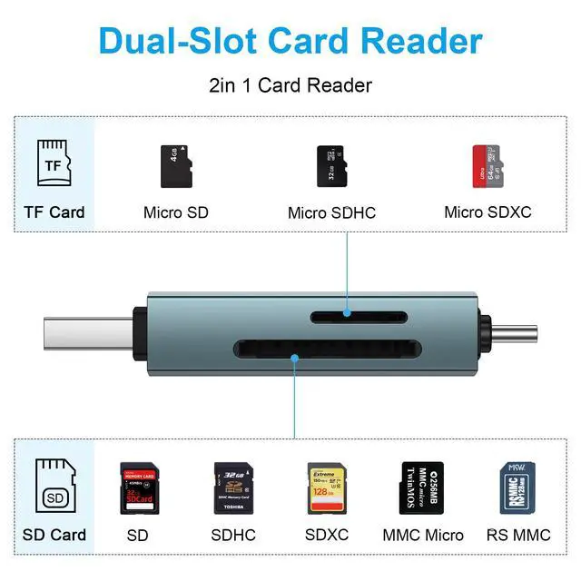 2 in 1 SD Card Reader Dual Slot