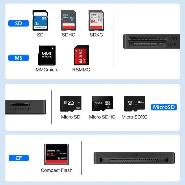 | SD / CF / Micro sD / MS card | SD / Micro SD | Micro SD | SD / Micro SD |