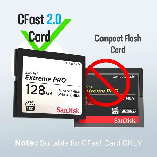 Support CFast 2.0 Memory Cards, including PixelFlash, Lexar, Transcend, SanDisk, and Sony.