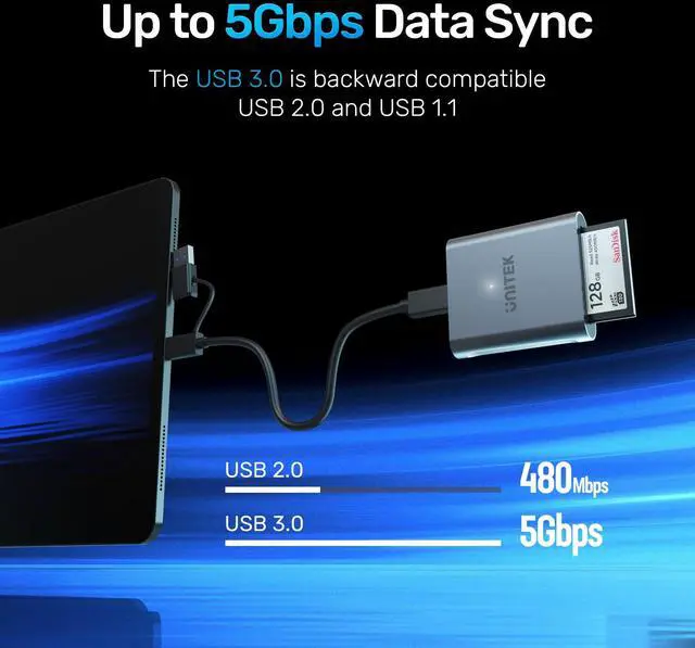 The USB CFast Card Reader supports super faster data transfer up to 5Gbps through USB 3.0 interface -10X faster than USB 2.0, transfer HD movies or files in just seconds.