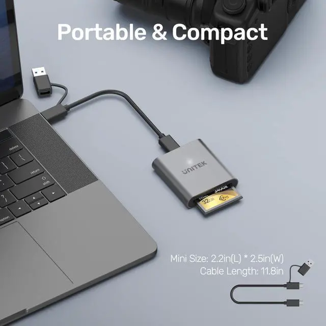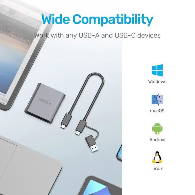 Supports CFast 2.0 memory card data transfer. Read and write high-resolution photos, full HD videos from your CFast card quickly and transfer speed.