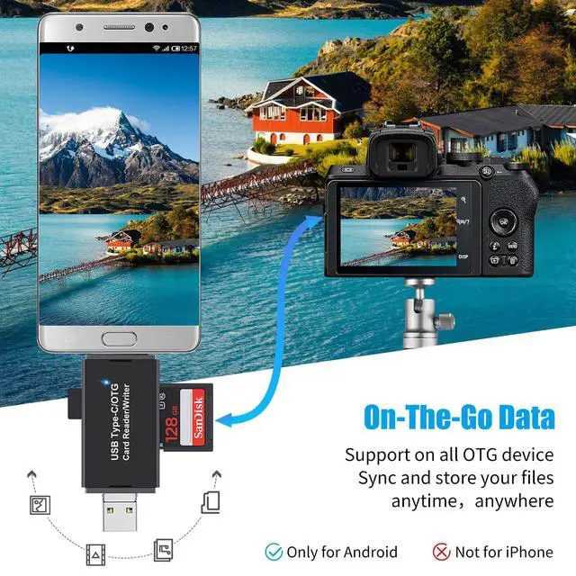 Micro SD Card Converter for Data Transfer. Transfer and save files, pictures, videos and music from SD/Micro SD card to your computer, Android smartphone and tablet. The Camera SD Card Adapter makes it easy to download photos and videos from your digital camera to your phone so you can view them in the Photos app and share them instantly with family and friends.