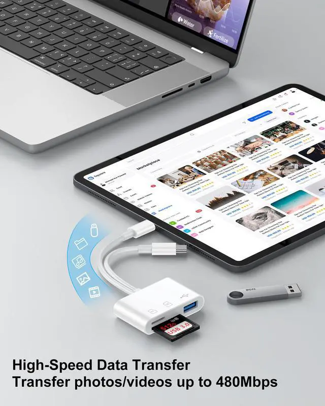 Universal Compatibility: The upgraded SD card reader has dual connectors-USB C and Lightning, designed for iPhone between 5 to 16 series, in addition to iPad, Macbook, Laptop or Android devices. It is compatible with iPhone 17/17Pro Max/17e/Air/17 Pro/16 Pro Max/16/16e/15/15 Pro Max/14 Pro Max/14/13/13 mini/13 Pro/12/12 Pro/11/XS/XR/X/8, Android Samsung S26/S25/S24/S23/S22/S21/A16/A15/A14/A56/A55/Note 20/Z Flip/Z Fold, Google 10/10 Pro/10 Pro XL/10 Pro Fold/9Pro XL/9Pro/8/7A/6/5/4XL, iPad Pro/Air/Mini, and more.