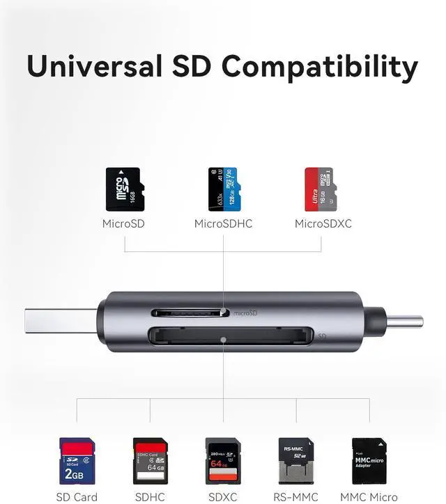 - Double Duty: SD & Micro SD(TF), support simultaneously read and write on 2 cards