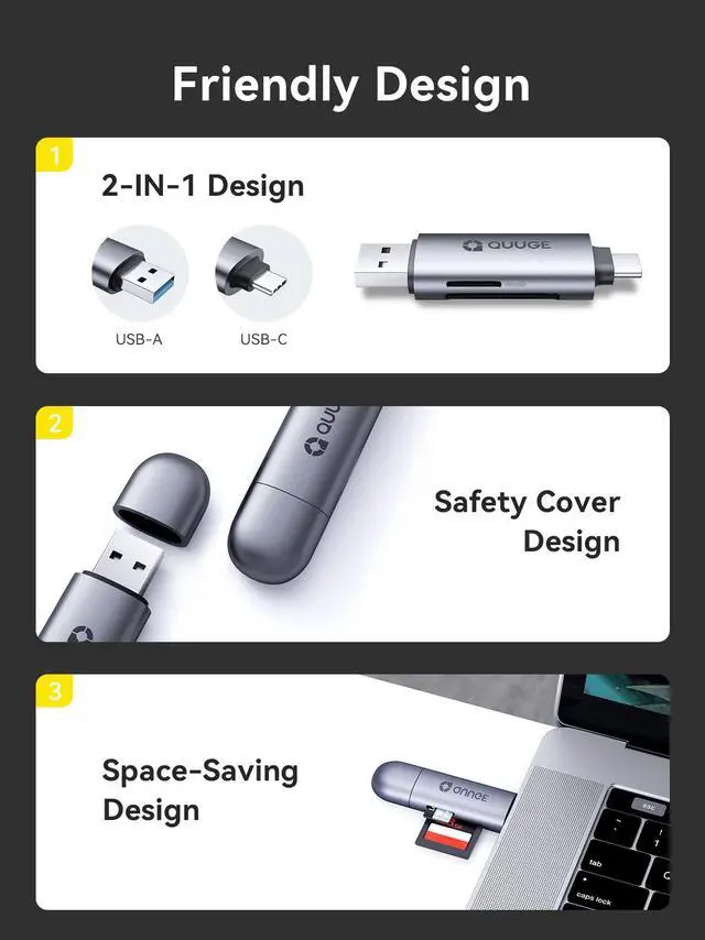 QUUGE 2 in 1 SD & Micro SD Card Reader with Dual Connector
