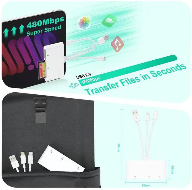 High-Speed 480Mbps Data TransferUSB USB C SD card hub adapter support memory card up to 480Mbps, Transfer high-resolution HD movies, images and video recordings to your computer faster and more efficiently. Also backward compatible with USB 2.0, 1.1 and 1.0