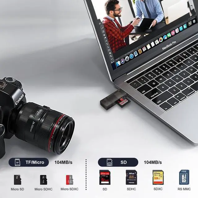 Extremely fast transfer speed allows you to transfer more files in less time, reducing waiting time, this USB c to sd card reader suitable for photographers, studios, and those who need to transfer large files