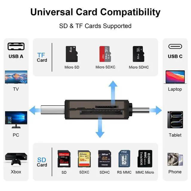 2 in 1 USB 3.0 & USB C SD Card Reader Universal Compatibility