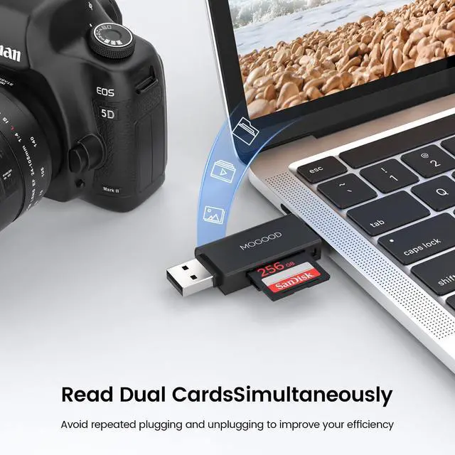 The sd card adapter for laptop Do NOT supports two cards reading at the same time, View recordings of your security cameras, wildlife monitors, private surveillance cameras and car monitors instead of bringing them home to you. This card reader supports SD/Micro SD/TF/SDHC/SDXC/Micro SDHC/Micro SDXC/MMC card etc.