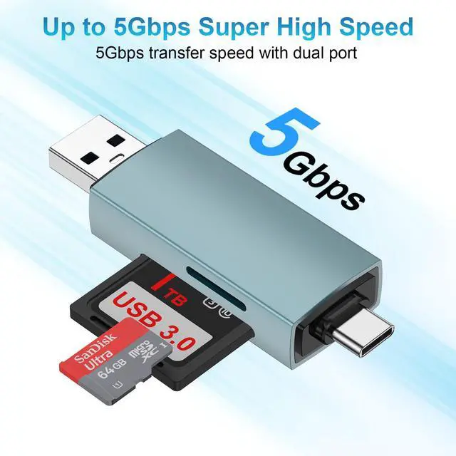 Dual Slot Memory Card Reader,USB-C and USB 3.0 SD Card Reader,Space Grey Notes: