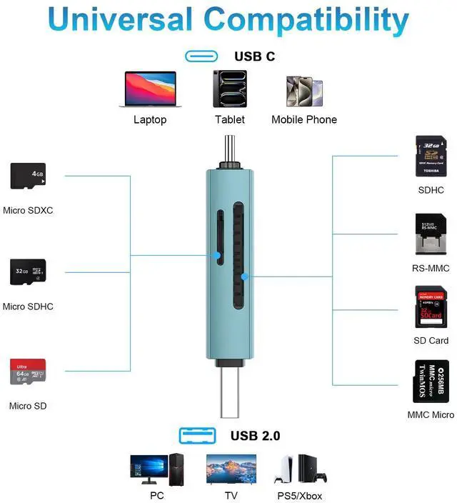 --For Windows 11/10/8.1/8/7/XP/Vista,macOS,Linux,Chrome OS,Android,etc Supported Memory Cards