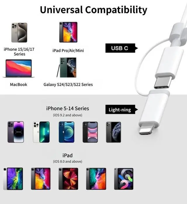 Compatible with iPhone 17/16/15 series, iPad or Macbook and others with USB-C ports.
