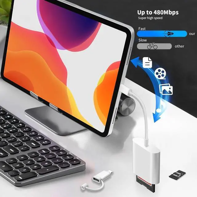 SD Card Adapter supports two-way to stable transfer files/photos/music/video, from SD card to iphone/ipad or from iphone/ipad to memory cards.