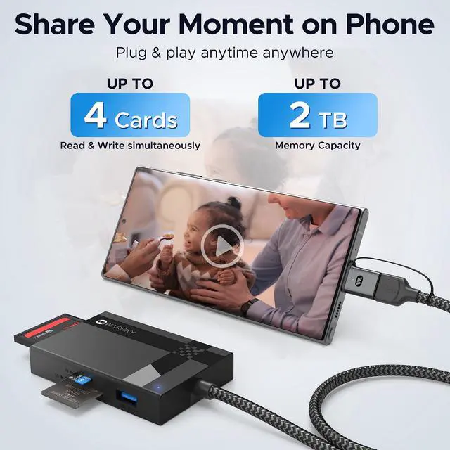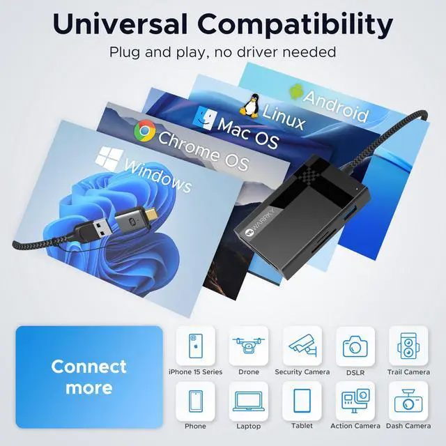 ![Alt view image 3 of 7 - SD Card Reader 7 in 1, WARRKY [Dual Connector USB3.0/USB C, 2.5FT Nylon Cable] Memory Camera Card Adapter Hub for Micro SD/CF/MS/UHS-I, Fit for iPhone 17, Camera, MacBook Pro/Air, Mac, iPad, Android](https://c1.neweggimages.com/productimage/nb640/C5TPD2603200EB2V574.jpg)