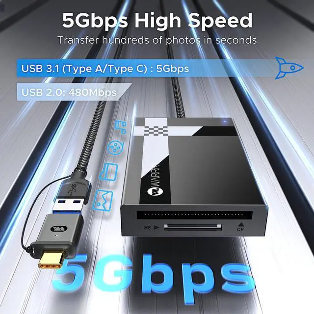 ![Alt view image 5 of 7 - SD Card Reader 7 in 1, WARRKY [Dual Connector USB3.0/USB C, 2.5FT Nylon Cable] Memory Camera Card Adapter Hub for Micro SD/CF/MS/UHS-I, Fit for iPhone 17, Camera, MacBook Pro/Air, Mac, iPad, Android](https://c1.neweggimages.com/productimage/nb640/C5TPD2603200EB2Z428.jpg)