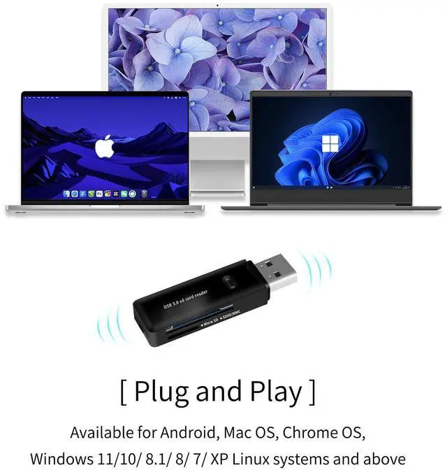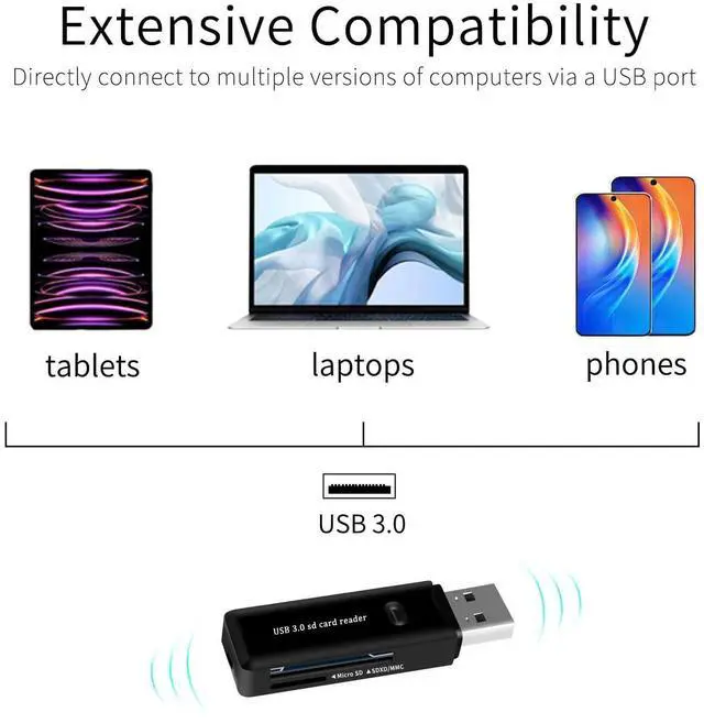 USB 3.0 SD Card Reader for PC, Laptop, Mac, Windows, Linux, Chrome, SDXC, SDHC, SD, MMC, RS-MMC, Micro SDXC Micro SD, Micro SDHC Card and UHS-I Cards