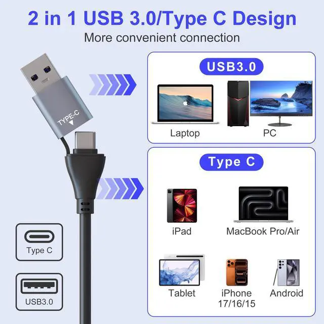 True Plug-and-Play Simplicity--No apps. No drivers. No Wi-Fi passwords.--5Gbps transfer speeds--Fast speed to match your content.