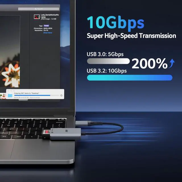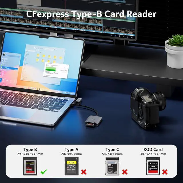 | - | 1. Data transfer rates depend on the speed of the memory card itself and the speed of your device's port. The CFexpress Type B card reader is a USB 3.2 Gen 2 version, with a theoretical transfer speed of 10Gbps (1250MB/s) for its USB-A/USB-C ports. |