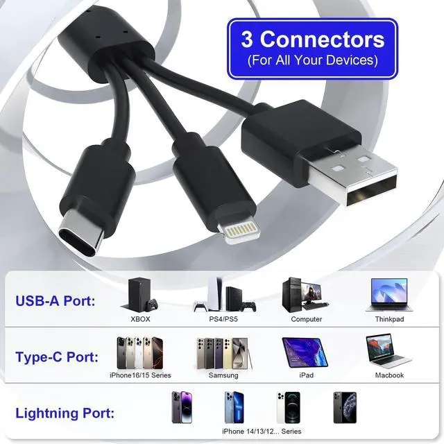 Lightning+USB C+USB A Ports 3 in 1 Port Design