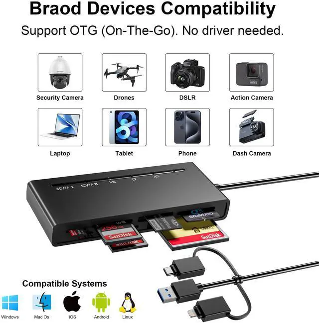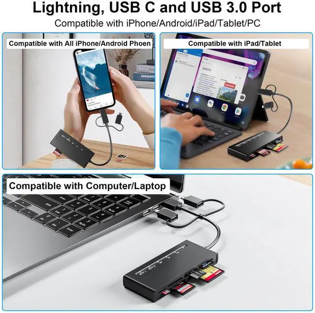 Multi memory card reader for iphone/ android smartphones/ ipad/ tablet/ macbook/ PC/ laptop