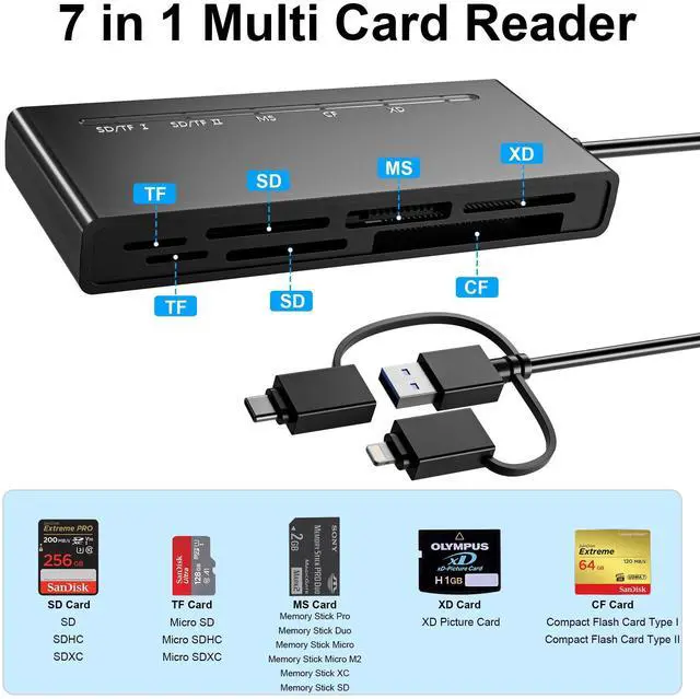 7 in 1 Multi-ports Card Reader