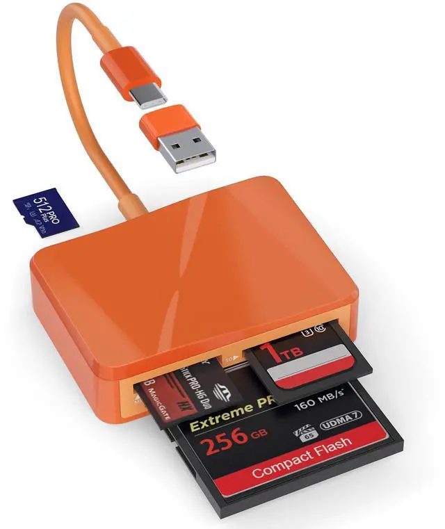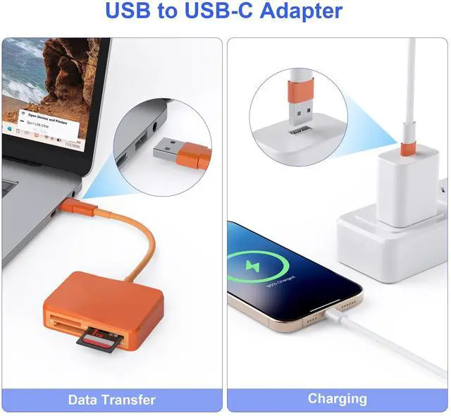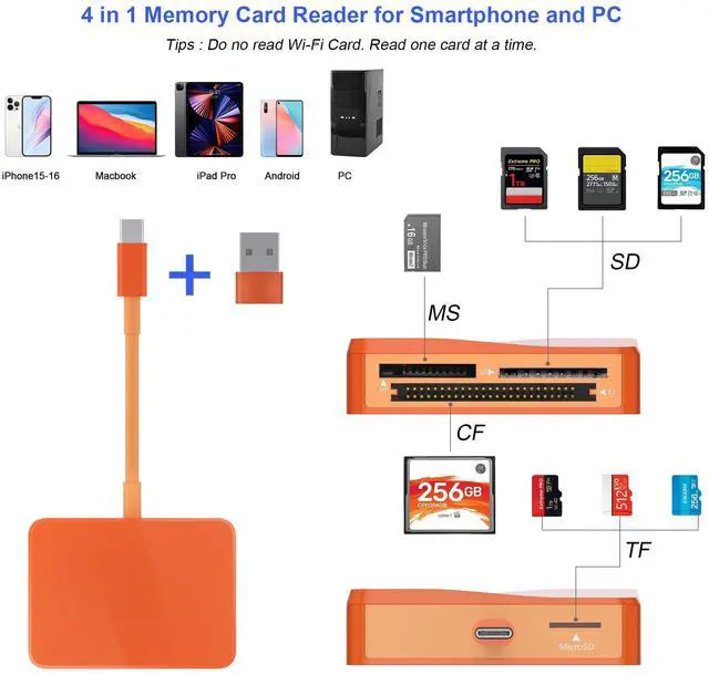 4 IN1 Card Reader for iPhone 15-16,Macbook and Smart Devices with USB-C/USB Port