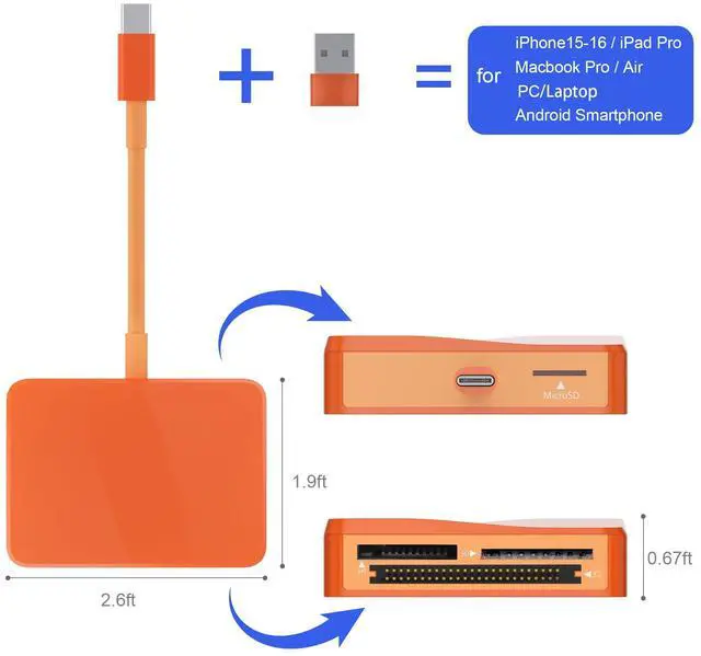 From iPhone 15 to iPhone16, all iPad with USB-C ports, all smartphone with USB -C ports, are compatible with this card reader.