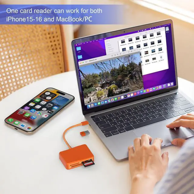 This is the card reader you bought for your iPhone 15-16 but you also don't have to buy a new product when you need to read the memory card with your MacBook.
