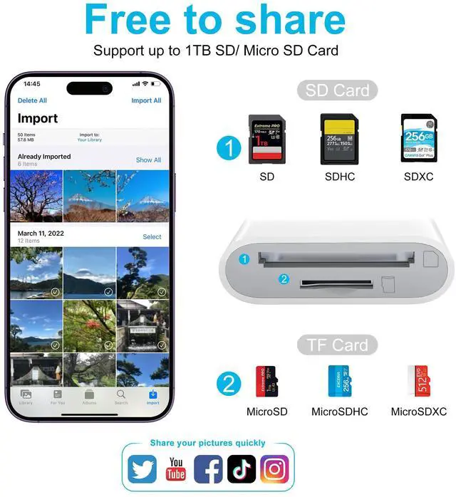 Cards Compatibility: Compatible With SD, SDHC, SDXC, RS-MMSC, MicroSD, MicroSDHC, Micro SDXC, UHS-I/UHS-II cards from Digital Camera/Dash Cam/Trail Cam etc.