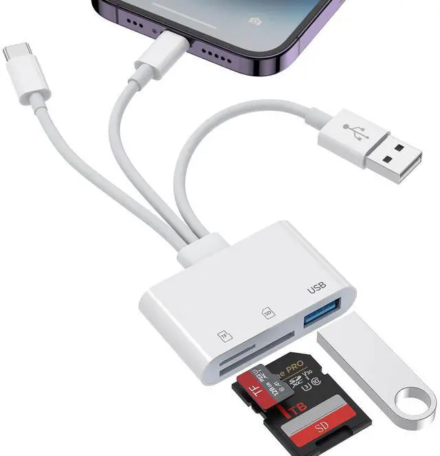 3-in-1 SD Card Reader for iPhone 17 16 15 14 iPad, Memory Card Reader with USB Camera Adapter Plug and Play, SD/Micro SD Card Adapter for Mac Android PC, Trail Game Camera Viewer No App Required