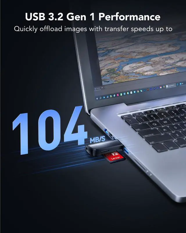Dual Slot USB-A Reader, USB 3.2 Gen 1 Up to 104MB/s, USB-A for SD/MicroSD/SDHC/SDXC Camera Card Reader Adapter, OTG MicroSD Card Reader for PC/Laptop/Tablet