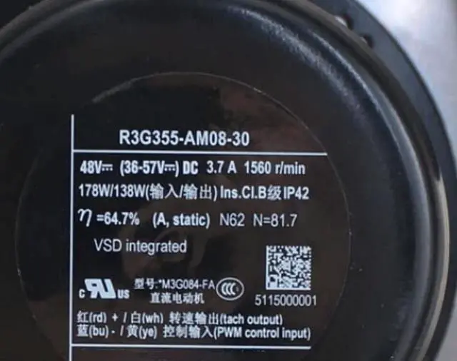 Zyvpee R3G355-AM08-30 M3G084-FA 48V 3.7A 178/138W 1560RPM Centrifugal Cooling Fan