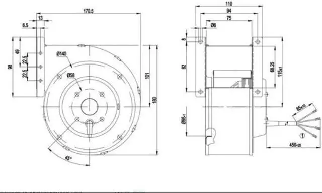 G2E120-CR21-01 230V 83/100W 4 Wires All-Metal Turboblower 110x170x180mm
