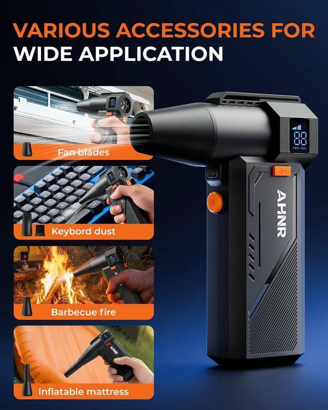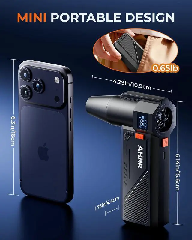 - [Lightweight & Portable Design]This mini air duster features a compact, portable design, weighing only 0.65 lbs with an ergonomic grip that fits comfortably in your palm! Its small size and ultra-lightweight build allow easy storage in toolboxes, tote bags, or even pocketsno bulky hassle at all. Whether for home cleaning or outdoor use, its effortless to carry and ready to use anytime, anywhere!