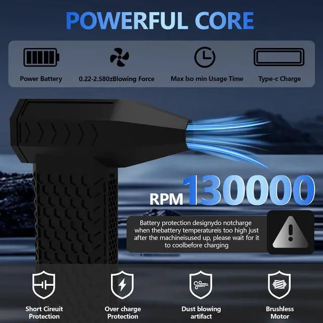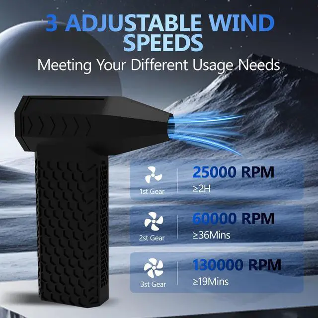 Introducing the ultimate cleaning companion - the Compressed Air Dusters, an innovative electric air blower designed to revolutionize your cleaning routine. Crafted from durable ABS+PC material, this powerful air duster is perfect for various cleaning tasks, providing an eco-friendly solution that is both cost-efficient and versatile. Equipped with a Brushless permanent magnet ultra high-speed ducted metal motor, the Compressed Air Dusters offers three adjustable speed settings to suit your cleaning needs. With a maximum wind speed of 138g, this electric air blower ensures efficient and thorough cleaning every time. Say goodbye to endless battery changes - the Compressed Air Dusters features a rechargeable 5200mA battery with fast charging capabilities, allowing you to get back to cleaning in no time. The 2.5-hour charging time ensures minimal downtime, while the impressive battery life of up to 1 hour and 40 minutes on the lowest speed setting guarantees long-lasting performance. This lightweight and portable air duster is designed for convenience, making it easy to tackle any cleaning task with ease. Whether you're removing dust from electronics, cleaning hard-to-reach areas, or maintaining your workspace, the Compressed Air Dusters is the perfect solution. Plus, with excellent customer support and a 24-month guarantee, you can trust that you're investing in a high-quality product that will stand the test of time. Upgrade your cleaning arsenal with the Compressed Air Dusters and experience the difference for yourself.