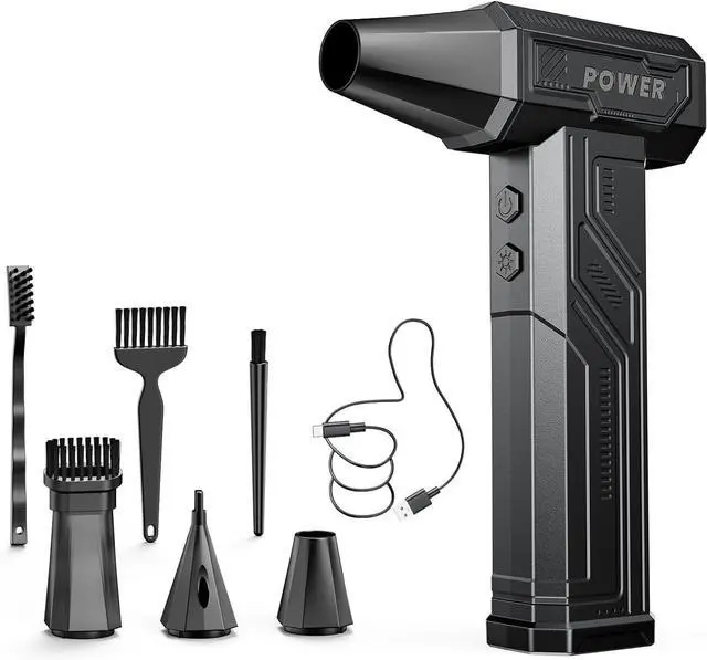 Versatile Cleaning Tool: Equipped with 3 nozzles and 3 brushes, the air blower is perfect for a variety of cleaning tasks, from PCs and keyboards to outdoor gear inflation and campfire management.