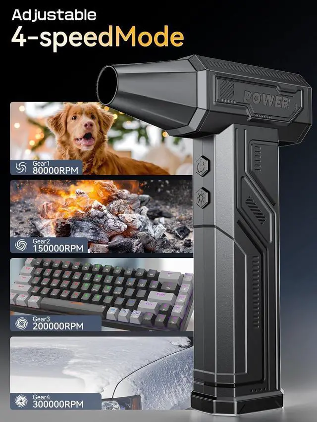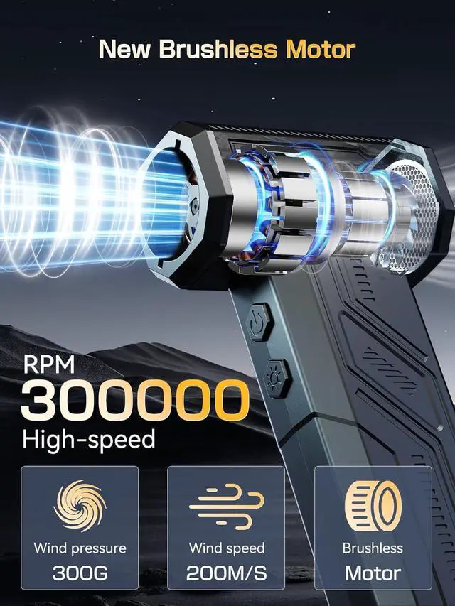High-Speed Performance: The electric air duster boasts an impressive 300,000 RPM, delivering powerful airflow for efficient dust and debris removal, making it ideal for cleaning electronics, home, and car interiors.