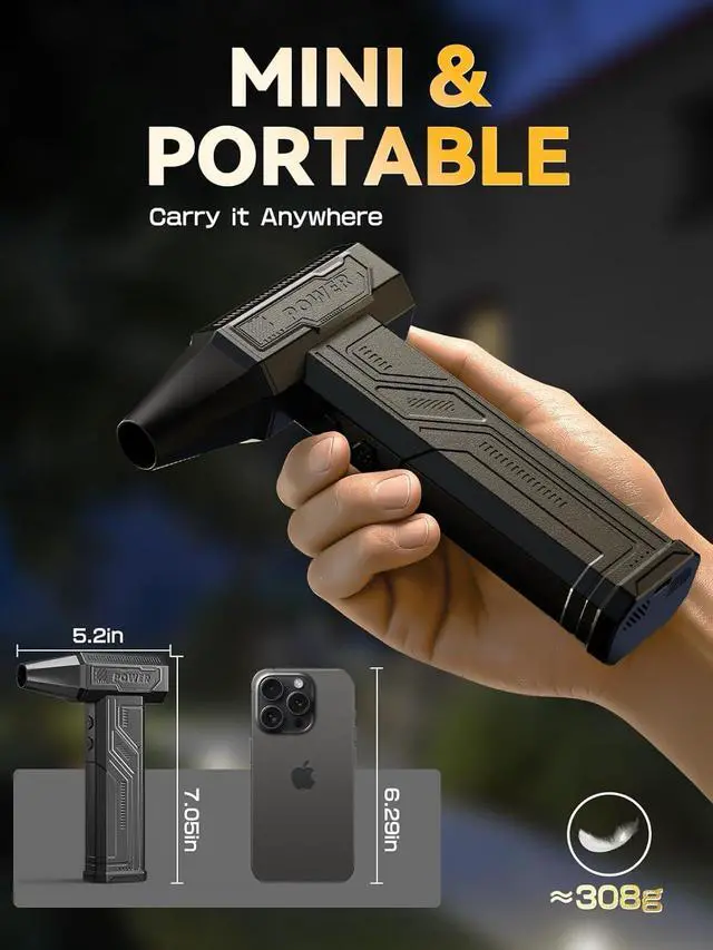 Compact & Portable Design: Weighing just 0.7lb, the dust blower is lightweight and easy to carry, featuring a convenient storage bag for handheld use during travel, camping, or indoor cleaning.