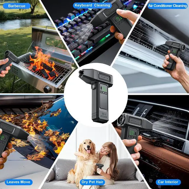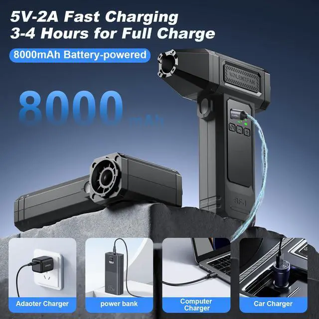 Cordless & Rechargable: The cordless air duster is euqipped with 8000mAh battery, you can use it outdoor if you charge it fully. Powerbank is available anytime and anywhere