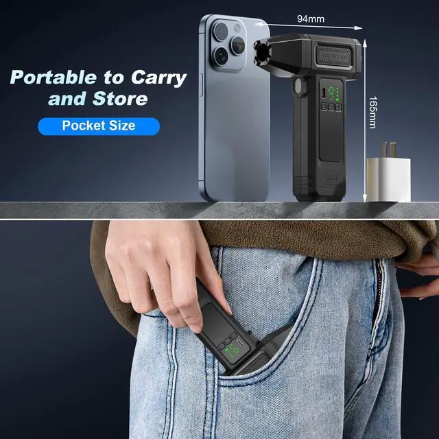 Mini Blower Turbo Fan, Compressed Air Duster, 100, 000RPM Super Power Cordless Electric Air Duster, No Canned, 3-Gear Adjustable Turbo Fan Duster Blower for Keyboard PC, Car, Outdoor and House Cleaning