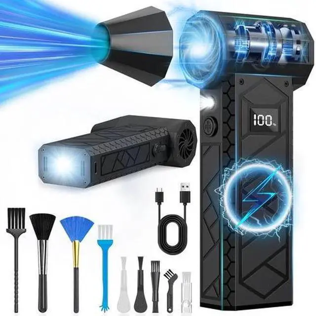 This electric cleaning air duster can be used to blow hair, fallen leaves, dust, fire (suitable for barbecue), and snow. In addition, it contains 9 accessory brushes that are suitable for various places. You can use it to clean the debris on the car seat, sofa, fax machine, printer, air conditioner, computer, and keyboard. It can easily clean places that cannot be reached by hands to meet all your needs.