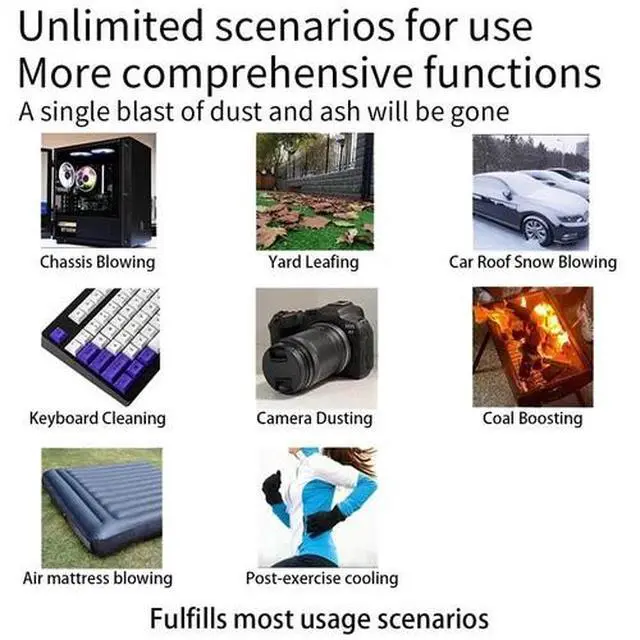 This cordless mini turbo blower delivers powerful, focused airflow in a compact, portable design. Powered by a high-speed motor reaching up to 130,000 RPM, it effortlessly removes dust, debris, and hair from keyboards, PCs, laptops, car interiors, cameras, and other electronics.