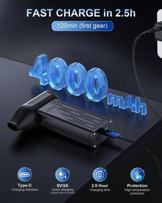 Upgraded 4000mAH high-capacity lithium batteries enable the air duster.