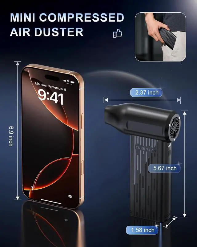 This electric air duster can be widely used for cleaning electronic devices; car cleaning; home dusting; workshop/DIY; pet hair removal/haircuts; car interior corners; travel/portable use; office/studio; musical instrument maintenance; gift purposes
