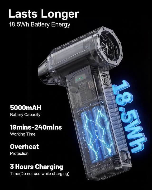 Smooth Airflow Output: Provides steady airflow for routine cleaning tasks. Simple Speed Adjustment: One-button control for three airflow levels. Rechargeable Battery System: Supports repeated use without disposable parts. Built for Stability: Protection features help maintain consistent performance. Lightweight Handling: Easy to operate and store.